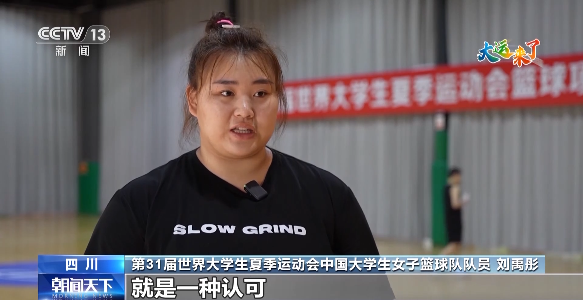 第31届世界大学生夏季运动会中国大学生女子篮球队队员 刘禹彤:没有想到真的有一天可能会参加世界大运会这样的大型运动会,对于我从初中以来到现在篮球每天的付出和训练是一种认可,是一个很值得纪念的比赛。