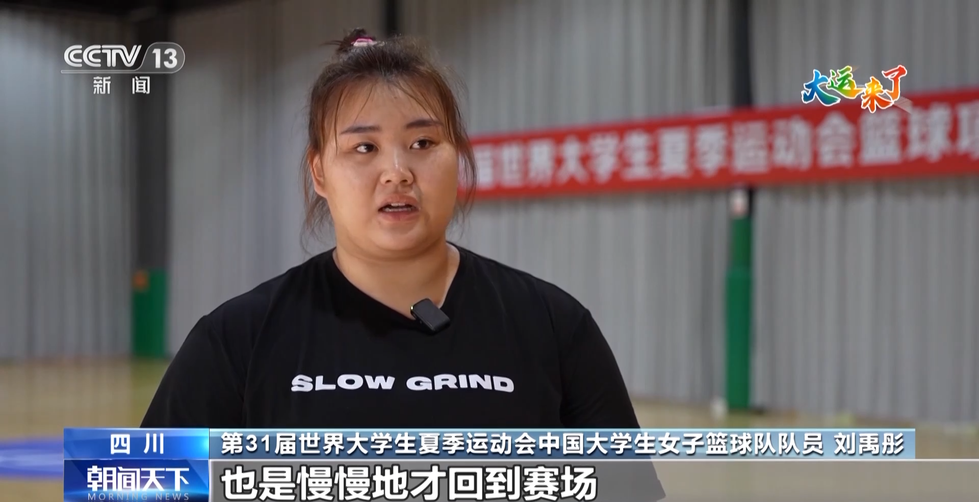 第31届世界大学生夏季运动会中国大学生女子篮球队队员 刘禹彤:中间有受过伤,就像是我们大学第四年的时候,我的脚踝因为老伤陈旧性骨折,脚里面都是碎的。但是教练员一直细心地帮助我康复,进行一些恢复训练,慢慢地才回到赛场。