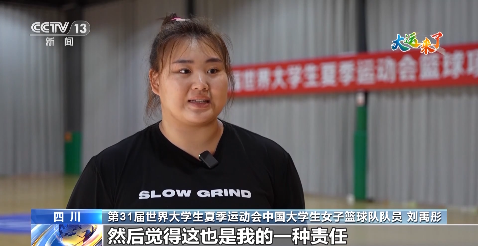 第31届世界大学生夏季运动会中国大学生女子篮球队队员 刘禹彤:打篮球是五个人的事情,可能就是队友对我的信任,让我在队里要承担得更多,这也是我的一种责任。