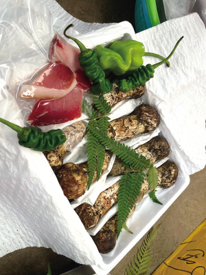 商户马先生家店内,一份寄往福建的松茸正在打包,打包盒里还放着4个皱皮辣椒和一袋火腿片。马先生说,他做野生菌批发生意已有10多年,每年野生菌上市时,他都要往省外发货,赠送配料是从今年开始的。“这个想法来源于顾客的需求。一些省外的顾客购买野生菌后,会询问我做法,有的也会让我帮忙买配料。皱皮辣椒、大蒜价格不算贵,于是我就免费赠送给顾客,让他们品尝美味的同时,感受到我们的热情和周到的服务。”