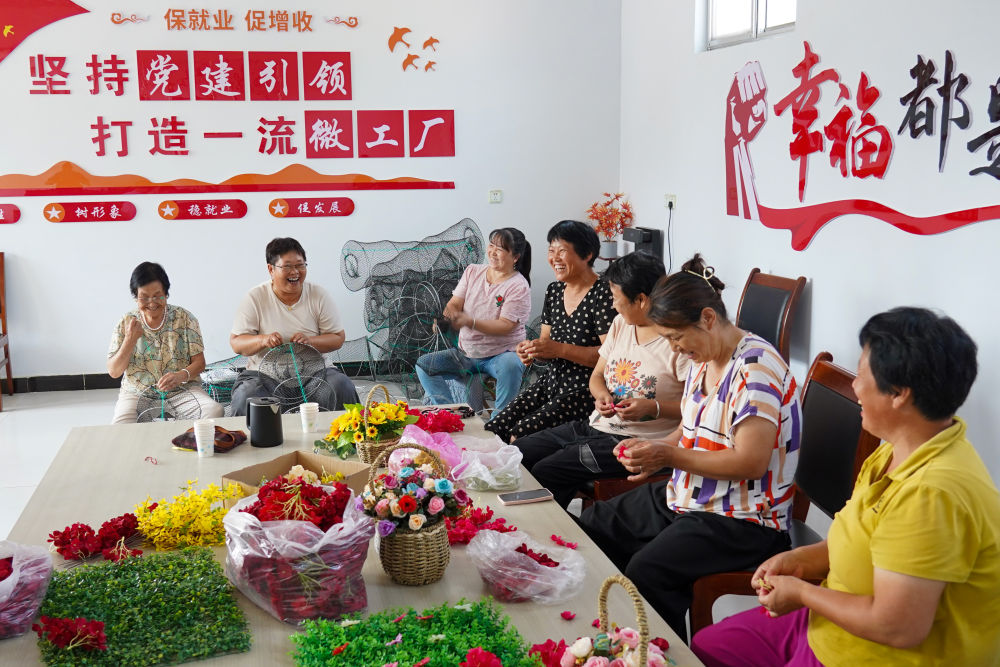 2023年7月18日,山东省无棣县棣丰街道贾店村居民在微工厂内忙碌。目前,棣丰街道已发展微工厂9家,带动就业400余人。 新华社记者朱峥 摄