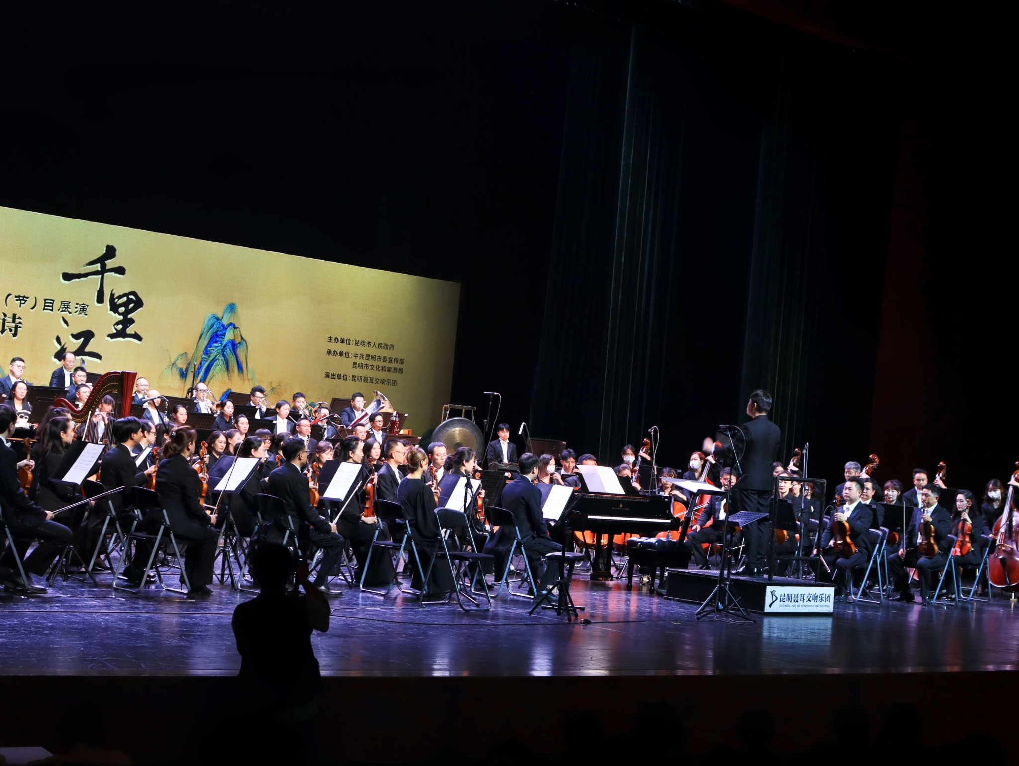 昆明信息港讯 7月21日晚,第七届聂耳音乐周系列活动2023年昆明市新剧目展演交响音诗《千里江山》专场演出在云南省大剧院隆重上演。交响音诗《千里江山》以《千里江山图》为创作蓝本,以音乐为“笔”、舞台为“卷”,将“天人合一”的中式哲学融入其中诠释中式美学。