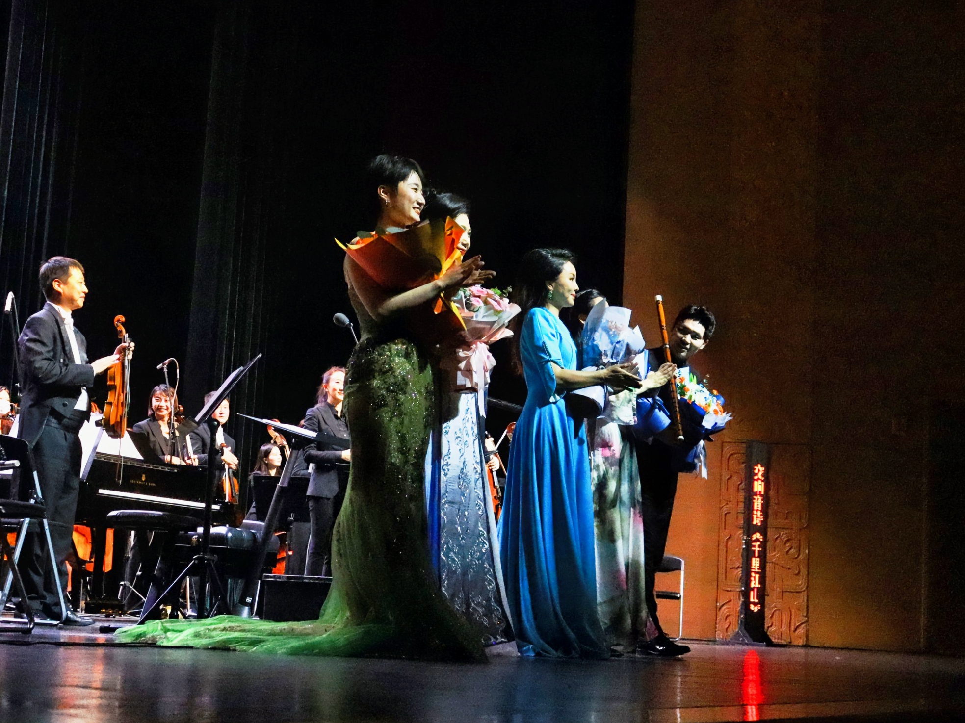 “今晚的演出由指挥家江非凡指挥和钢琴伴奏,邀请笙演奏家华逸飞,琵琶演奏家杨瑜,二胡演奏家钟笑天,竹笛演奏家高雅,女高音歌唱家董娴与聂耳交响乐团演奏员共同为春城乐迷上演这首气势磅礴的交响音诗《千里江山》,他们以精湛的演奏技巧和对音乐的高度理解,完美地演绎出这首交响乐作品的内涵与意境。”柴沁园表示,演出现场,音乐与视觉的完美结合,令观众沉浸其中,仿佛和画卷中的风景一同穿越、流转。