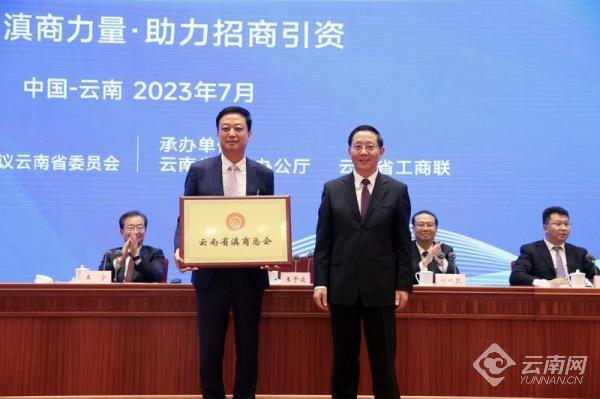 王予波为云南省滇商总会授牌。记者 陈飞 胡妤雅 摄