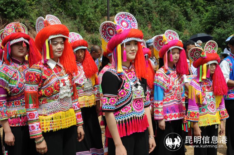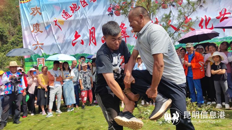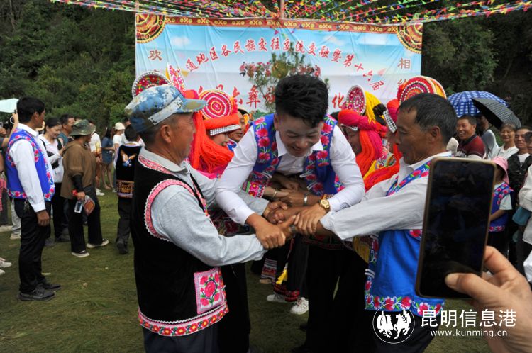7月23日下午在几子湾村分会场,数千名辖区群众齐聚小青山,当地的彝族同胞与各地游客欢快互动,开展了彝女赛装、爬油杆、公鸡啄架、情歌对唱、赠信物、拴红线、抢喜糖、抹花脸等一系列精彩的民俗活动,向广大游客、村民展现了广通地区古老彝族部落古朴而浪漫的原生态婚恋、交友、择偶习俗,共同欢庆“六月六”彝族情人节。