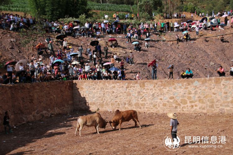 7月23日下午在大瓦房村分会场,斗牛大赛还没有正式开始,斗牛场周边的高台,崎岖的山地、田埂上,就已经密密麻麻站满了前来围观的村民、游客,还有不少远道而来的摄影爱好者。比赛过程中,在牛主人的吆喝声下,两头大牛怒目圆睁,牛角相抵,双脚发力,拼命向对方顶去。双方时而进时而退,时而伫立凝视,瞅准对方的空隙突然发起进攻,捉对厮杀,现场高潮迭起,喝彩声一浪高过一浪。