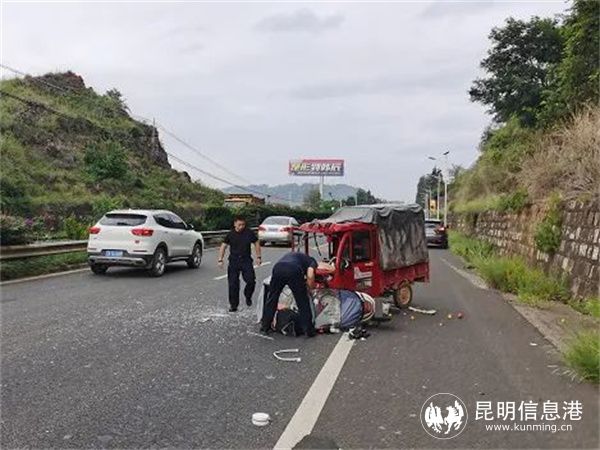 昆明信息港讯 记者合宇聪 记者从昆明市嵩明县公安局获悉,19日上午,该局保派出所民警上班途中遇到一起两辆电动车相撞的交通事故。民警妥善处置使道路得以快速恢复畅通,避免二次事故发生。