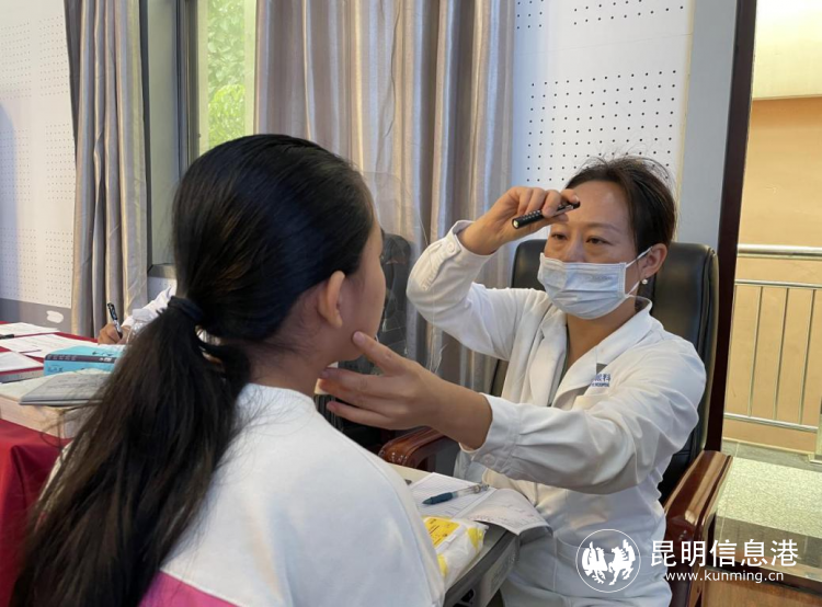 昆明普瑞眼科医院义诊团队现场为孩子们开展眼病筛查。供图