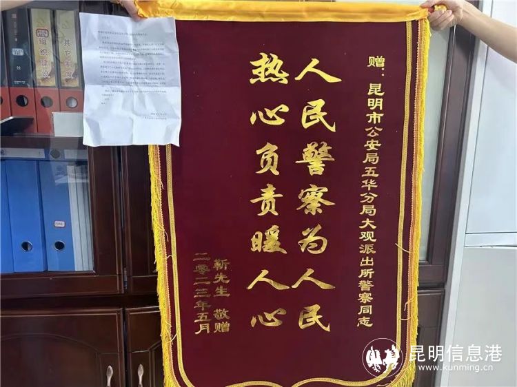 “我在新闻路的共享单车上捡到一部数码相机,请警察帮忙找找失主。”接群众求助后,大观派所勤务指挥室立即调取监控开展查找工作,根据相机内留存的蛛丝马迹,经过四小时全力仔细查找,终于找到失主,并及时将相机交还给失主靳先生。原来靳先生是从四川来昆旅游的,面对失而复得的相机,靳先生感到十分意外和惊喜。回到四川后,靳先生将一封写满对春城及春城警务人员的感谢信和锦旗邮寄到大观派出所。