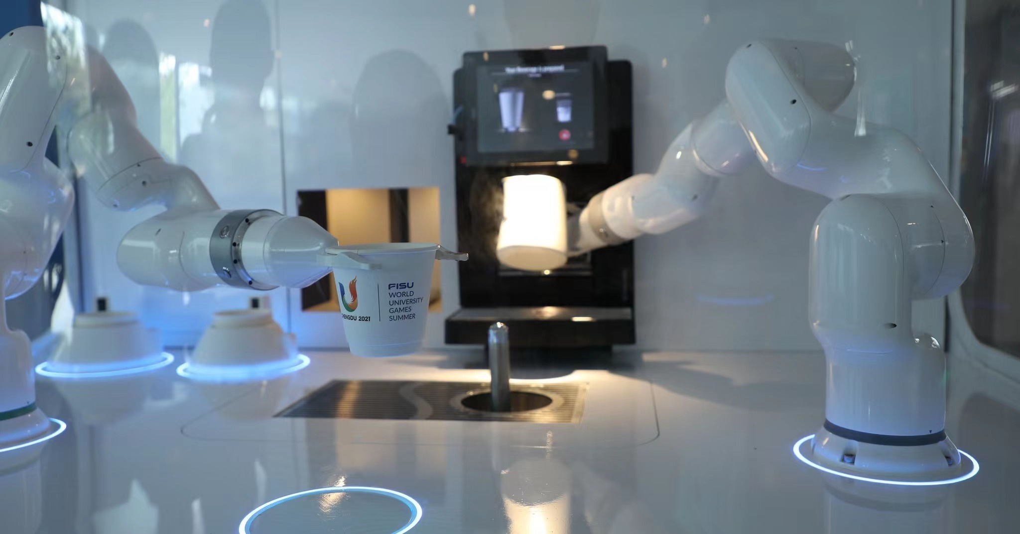 提供视觉与味觉双重享受——双臂拉花咖啡机器人