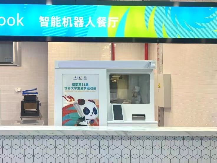 在美食服务方面,大运村里还有一家智能机器人餐厅,那里的小吃机器人提供7×24小时全天候服务,只需两分钟,熊猫汤圆、鸡肉小馄饨等菜品即可端上餐桌。据工作人员介绍,这款机器人集全自动接单、烹饪、出餐、叫号等功能于一体,即便无人值守也能根据消费情况及时补充食材,并完成自动清洗、消毒及封装程序,可随时满足大运村内人员的部分用餐需求。