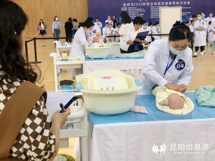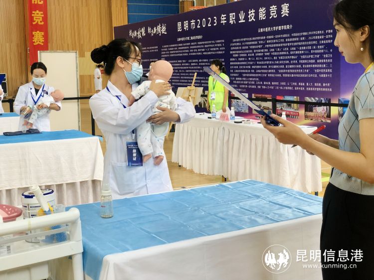 昆明信息港 记者上官艳君 7月27日,2023年昆明市职业竞赛暨育婴员赛项决赛在云南中医药大学拉开帷幕。