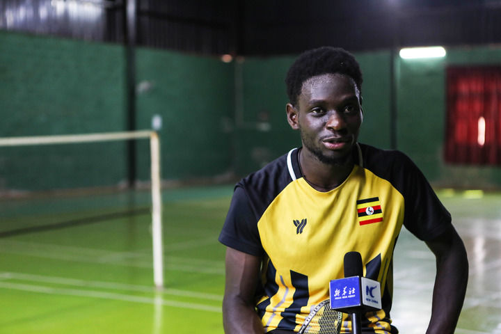 肯尼思·姆万布在乌干达坎帕拉一处羽毛球馆内接受新华社记者采访。新华社发(哈加拉·诺瓦达摄)