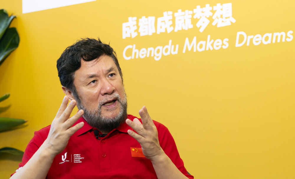 这是7月13日拍摄的成都第31届世界大学生夏季运动会开幕式总导演陈维亚在接受采访。 新华社记者 沈伯韩 摄