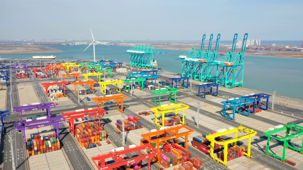 这是天津港全物联网集装箱码头(2023年2月21日摄,无人机照片)。(新华社记者赵子硕摄)