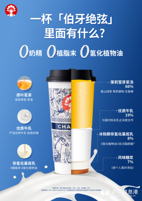 为此,霸王茶姬深入产业链源头,以健康茶饮初心,引入全新“冰勃朗非氢化基底乳”,从基底层面真正实现0奶精、0植脂末、0氢化植物油,找到“健康”与“好喝”的最优解。