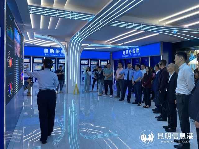 与会人员参观五华区税务局7×24小时自助办税服务厅。记者俞逍/摄