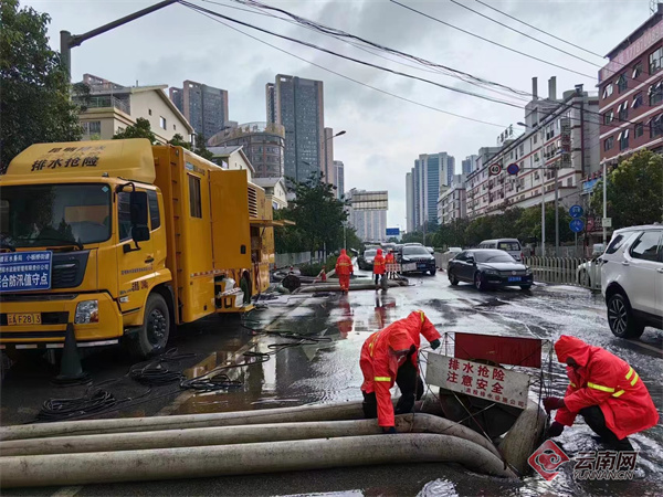 昆明市防汛指挥部全力防范应对强降雨,派出5个工作组深入一线,督导防汛排涝工作,主城各区及市排水公司派出防汛抢险队员1539名,应急抢险车辆214辆。截至13时,主城区各淹水断交点已处置完毕,交通恢复正常通行。