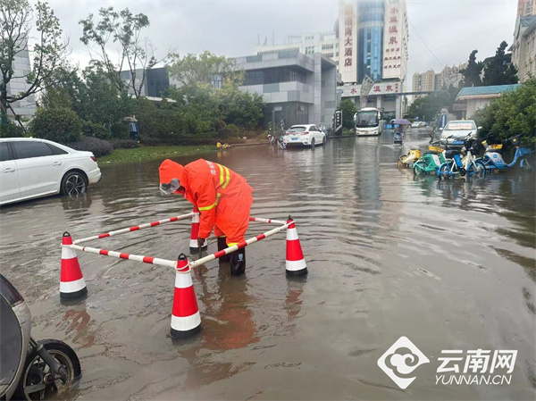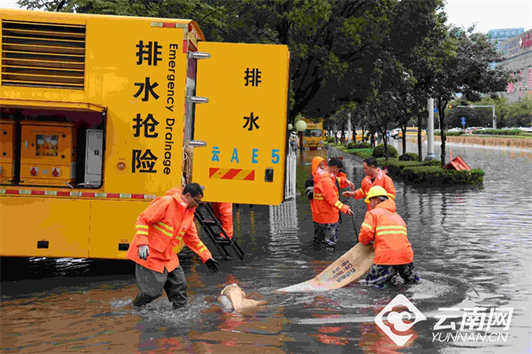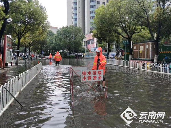此次强降雨发生后,昆明市防汛办迅速组织指挥调度,各县市区及市排水公司紧急开展防汛应急处置工作,消防支队共派出14个队站(含2个政府专职队)18车90人9艇开展处置。主城各区及昆明市排水公司派出防汛抢险队员1539名,应急抢险车辆214辆开展应急处置。昆明排水公司防汛工作预案,于27日22时34分启动戒备预警,提前对责任范围内43个内涝设防点安排现场人员值守,对29个重要防控保障区域进行大型抽排设备值守,巡查人员、车辆持续动态巡查。截至目前完成47个道路积水点处置,交通恢复正常通行。