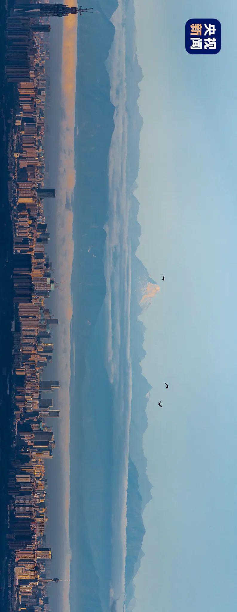 △天朗气清时,置身成都能与多座雪山同框:海拔7556米的"蜀山之王"贡嘎山、海拔6250米的四姑娘山幺妹峰、海拔5353米的成都境内第一高峰大雪塘。