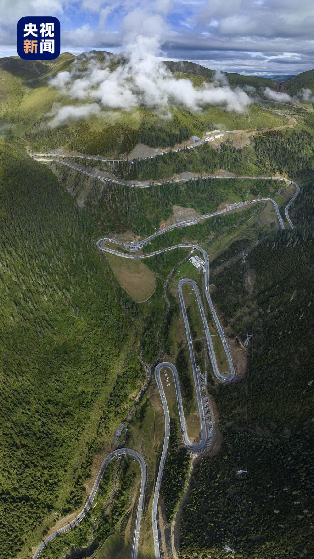 △318国道在四川甘孜的"天路十八弯"蜿蜒曲折。
