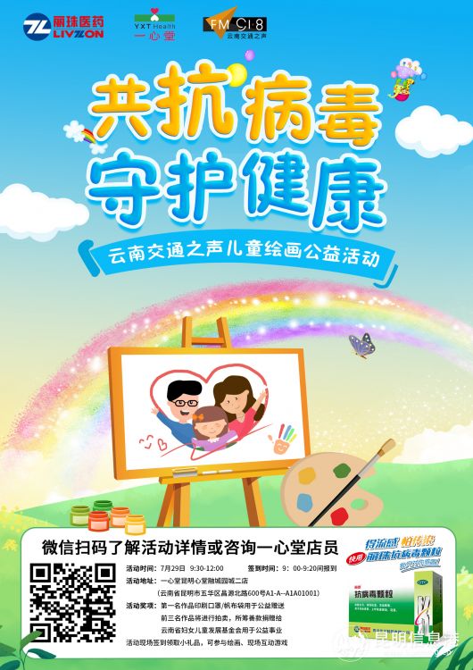 7月29日,由电台FM91.8交通之声联合云南省妇女儿童发展基金会发起,一心堂药业和丽珠医药共同举办的“共抗病毒 守护健康”儿童公益绘画活动在一心堂昆明心堂融城园城二店迎来了第四场路演。