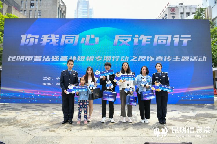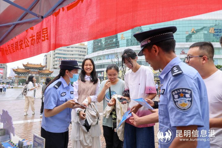 昆明信息港讯 记者合宇聪 7月30日,昆明市开展举办“你我同心·反诈同行”——“普法强基补短板”专项行动之反诈宣传主题活动。