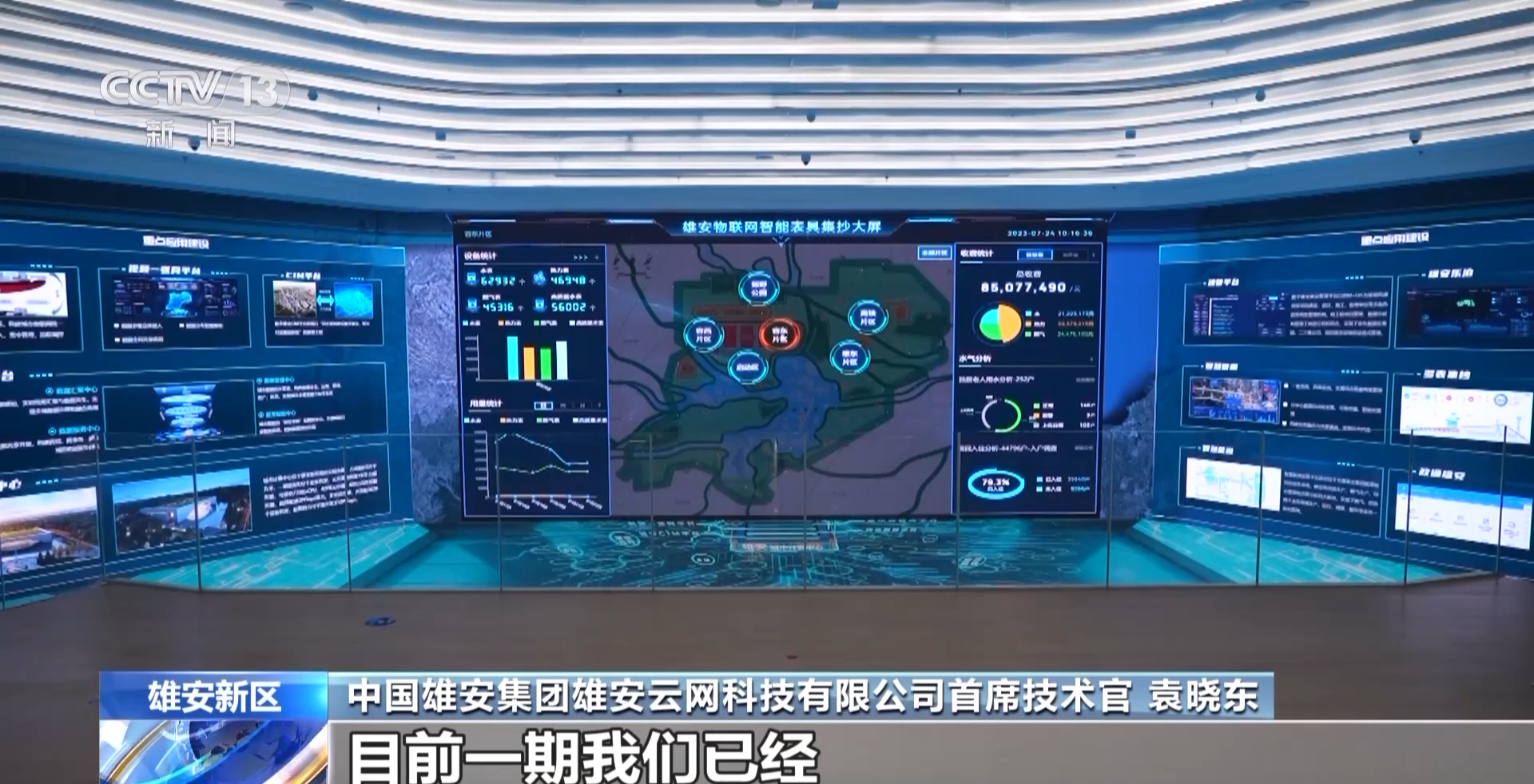 中国雄安集团雄安云网科技有限公司首席技术官 袁晓东:我们有3600个信息化机架的生产能力,目前一期我们已经配套建设了530多个机架,以容东片区为例,每平方公里我们已经部署了19. 8万个物联网传感器,这些传感器就像人的神经末梢,它的感知系统一样,可以清晰地把城市的成长过程的每分每秒用数据的形式记录下来。