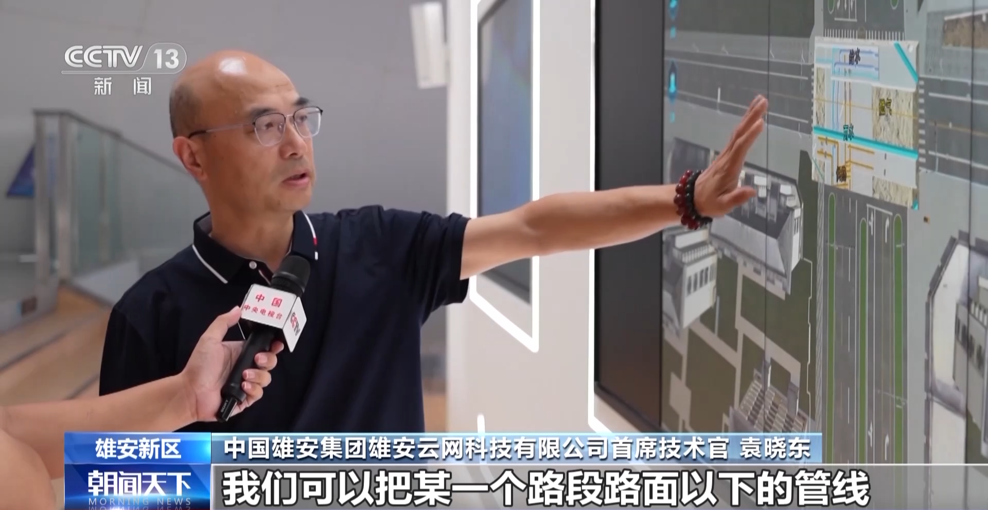 中国雄安集团雄安云网科技有限公司首席技术官 袁晓东:我们可以把某一个路段路面以下的管线很清晰地在平面上描绘出来,这样的话我们在施工过程中,就不会去影响到其它的管线。可以进行管线的精确定位,而且包括将来新的管道的埋设,我们都可以通过这个系统进行一些预演和碰撞试验,这样提高了整个城市的管线管理、施工和经营的效率。