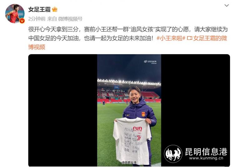 2023年7月28日晚,中国女足在女足世界杯小组赛第二场比赛中以1-0战胜海地,取得了本届比赛的第一场胜利。打进关键进球的中国女足球员王霜赛后在个人微博上发布一条视频,王霜手举一件特殊的签名球衣,说到“Hello,追风女孩们!我把你们也带来世界杯现场啦!还记得你们送给我的签名衣服吗?希望有一天你们也有机会真正踏上世界杯的赛场!追风吧!女孩!”