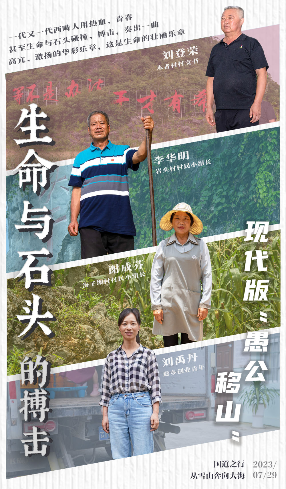 还有居住在深山的张家老林村的张仁贵家,一家4口,3人是残疾,硬是凭着大锤、铁杆和锄头等简陋工具,用两年时间在石山中“抠”出两公里多的进村公路;鸡街乡的肖家塘村,邓招才、侯寿高、姚仕元、姚仕斌4个人,每天清晨7点半开工,晚上8点收工,风雨无阻苦战6年,在石头山中修出了5公里道路……这些都是真实的现代版“愚公移山”的故事。