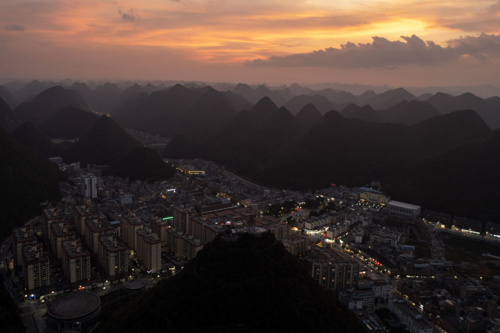 这是7月26日拍摄的夕阳下的西畴县城一景。新华社记者 陈欣波 摄