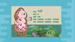 七仔是七彩花生的IP人物形象。她是一个可爱的小女生,是新晋的东川三宝中颜值最高的一个,性格外表坚硬、内心柔软、七彩斑斓,特长是国字培育、香甜脆爽、专治嘴馋。东川乌龙镇有“国家花生产业技术体系云南综合试验站”,肥沃的土壤、温和的气候,使这里试种出的七彩花生口感细腻,果肉自然香甜,富含硒元素、花青素和十几种氨基酸、脂肪酸、贝塔谷固醇、锌、膳食纤维等成分。