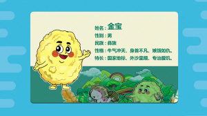 金宝是东川洋芋的IP人物形象。金宝是一个彝族男生,性格“牛气冲天、身首不凡、嫉饿如仇”,特长是国家地标、外沙里糯、专治腹饥。