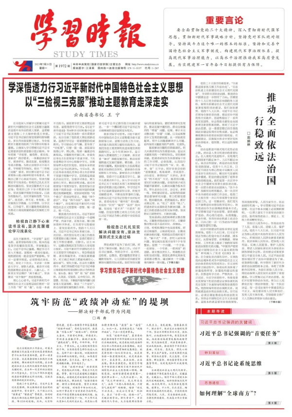 原标题:云南省委书记王宁:学深悟透力行习近平新时代中国特色社会主义思想 以“三检视三克服”推动主题教育走深走实