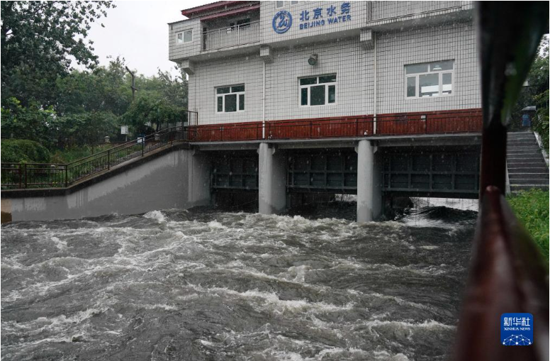 这是7月30日拍摄的凉水河分洪道闸。7月29日起,北京将南护城河洪水通过分洪道闸向凉水河分洪,减轻城区防洪压力。新华社记者 张晨霖 摄