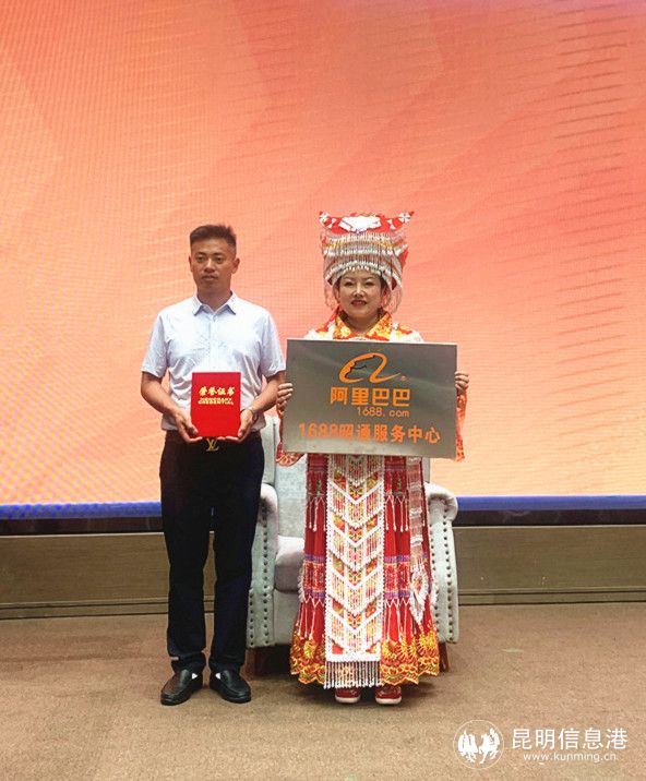 阿里巴巴负责人还向云南蛟龙文化公司董事长张黎和总经理王平授予“阿里巴巴1688昭通服务中心”牌匾。
