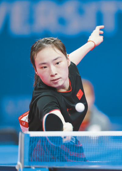 8月1日,中国大学生体育代表团选手王晓彤在乒乓球女子团体决赛中