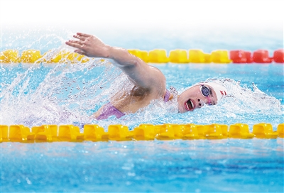 8月1日,中国大学生体育代表团选手张雨霏在女子4×100米自由泳接力决赛中。
