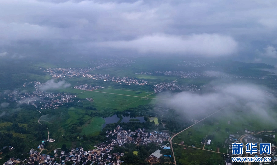 云海之上,瞰大美洱源(摄于7月23日)。新华网发(罗新才 摄)