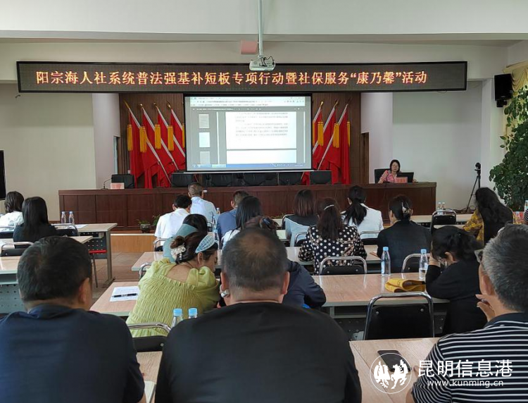 昆明信息港讯 近日,“人社服务先锋队”深入七甸街道开展人社系统第二次普法强基补短板专项行动暨社保服务“康乃馨”活动。此次活动共有来自各镇(街道)专业技术人员及部分职工代表共50余人参加,其中区普法强基补短板第五指导组到会场进行督导。