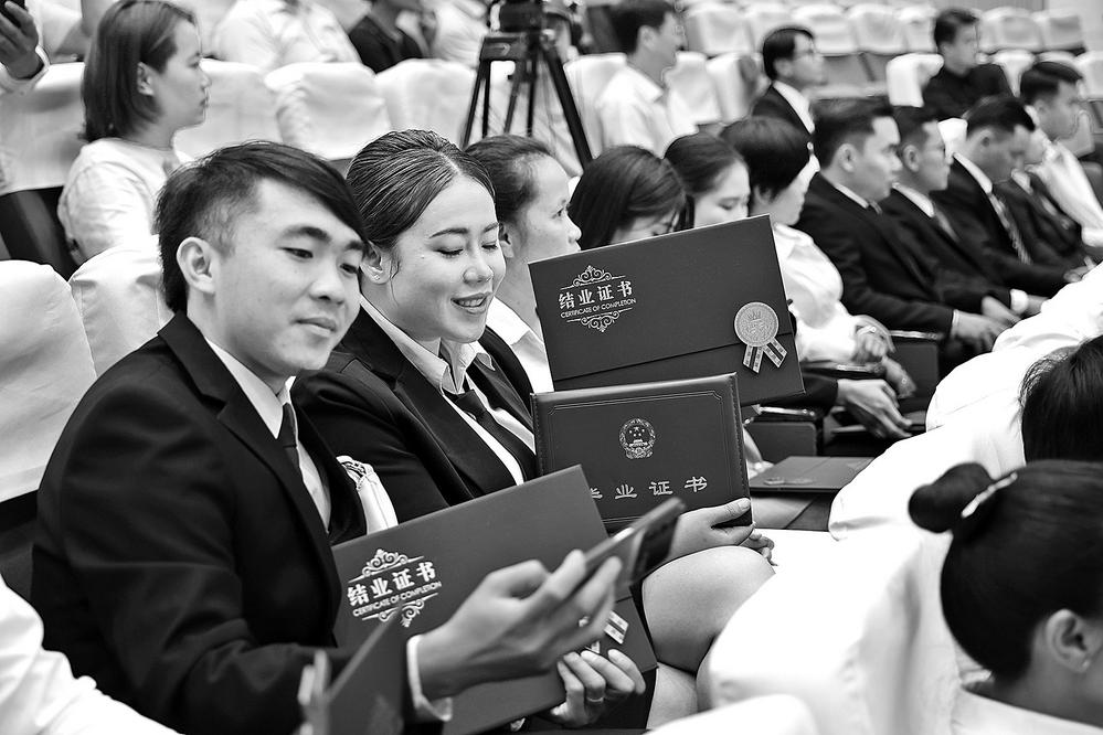 结业典礼在老挝教师合唱《朋友》的歌声中落下帷幕。据了解,老挝铁道职业技术学院将于2023年9月开始招生,40名老挝教师回国将走上教学岗位。昆明铁道职业技术学院派遣的16名专业教师组成的团队也将同期抵达万象,开启项目第二阶段为期5年的教育技术合作。