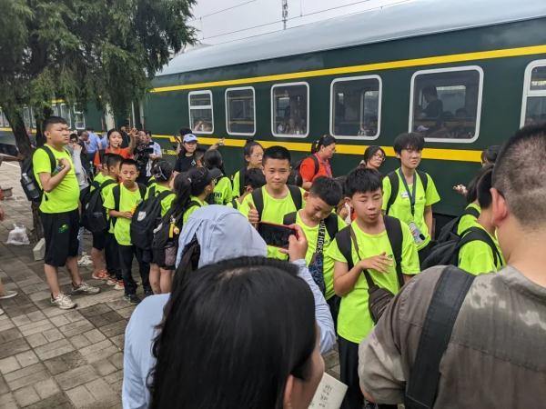 12时52分,伴随着悠长的风笛声,一趟转运列车缓缓驶进三家店站。待车停稳后,旅客们在工作人员的指引下有序下车。一些研学团的学生与前来接自己的家长激动相拥。