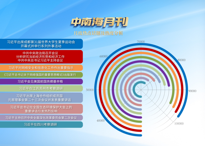 央视网《中南海月刊》运用智能大数据,与您一起回眸七月,从关系到新征程开局起步、中国式现代化行稳致远的大事要事中,感受实干为笔、担当为墨,看宏伟蓝图如何转化为高质量发展“实景画”。