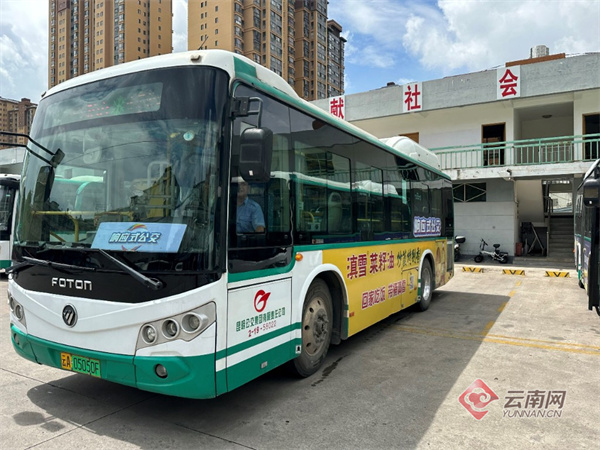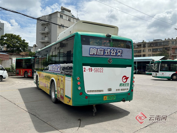 “响应式公交线路”,昆明公交集团将在首批9条试点线路营运车辆的车头、车尾及车身左右两侧使用醒目的专属车辆标识标牌,同时在车内使用提示标语和提示下车铃所在位置。(云南网记者 段芃)