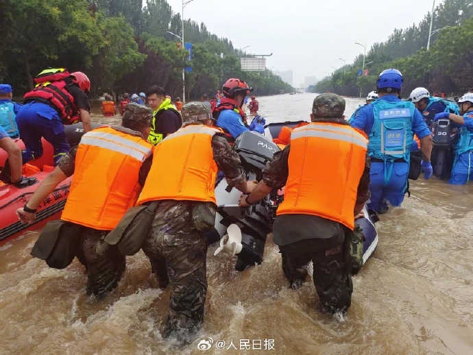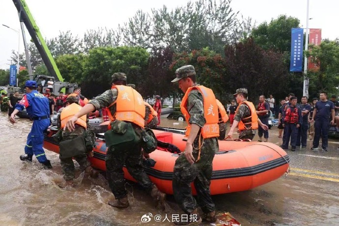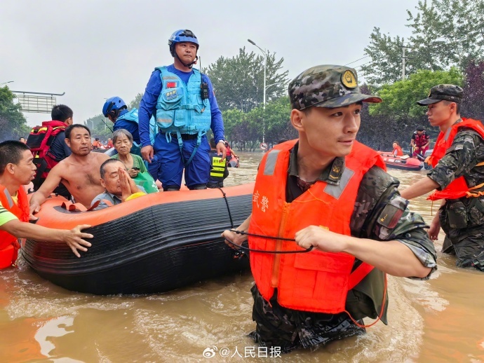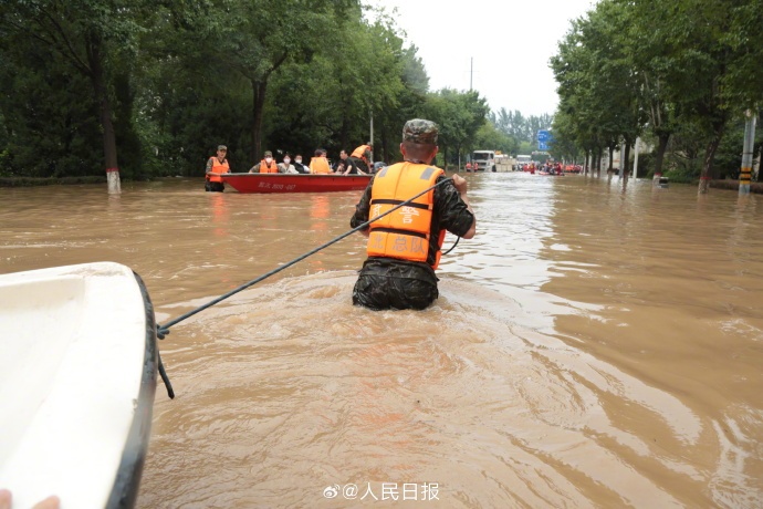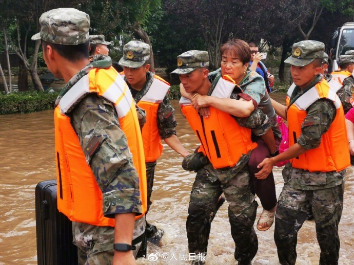 河北涿州多地出现严重内涝,大量群众被困。8月1日开始,武警河北总队分批次投入兵力和舟艇,全力开展搜救转移受困群众。由于洪水杂物较多,冲锋舟开进受限,遇有老人、儿童,官兵们在齐腰深水中一趟趟往返,将他们背上冲锋舟,转移至安全地带。辛苦了,人民子弟兵!
