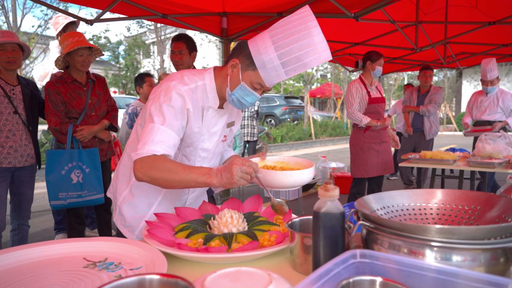 姚安2023年第九届荷花文化旅游节开幕的第一天,在姚安光禄长征国家文化公园广场前,餐饮美食大赛、农特产品展销会进行得如火如荼,逛古镇、品美食,愉悦身心、养眼解馋。