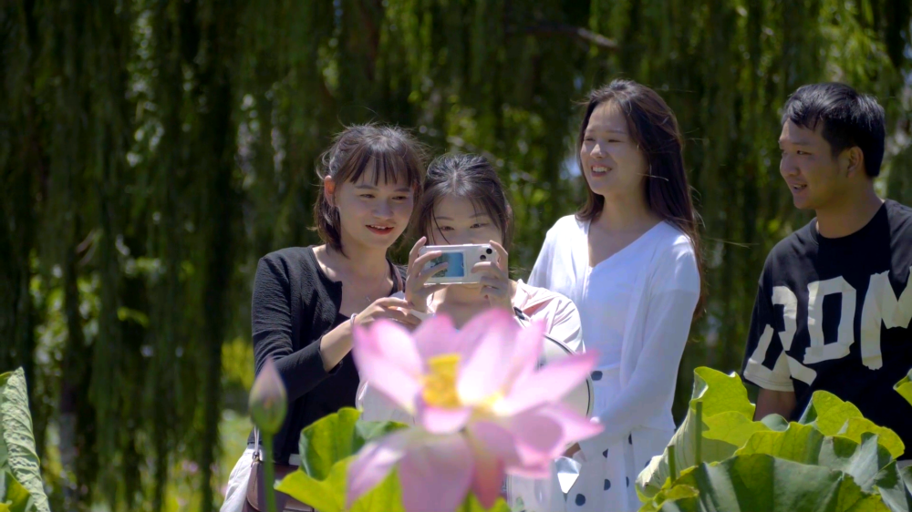 游客沉醉在荷塘当中。(2023年7月28日摄)