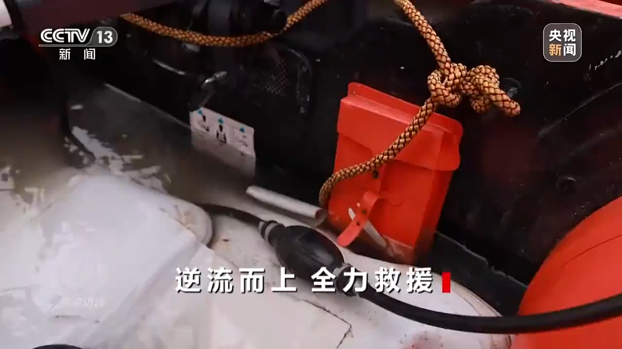 经过白天几个小时的行驶,几艘橡皮艇都不同程度受到剐蹭。消防员把屈大爷安置在状况最好的一艘橡皮艇上。