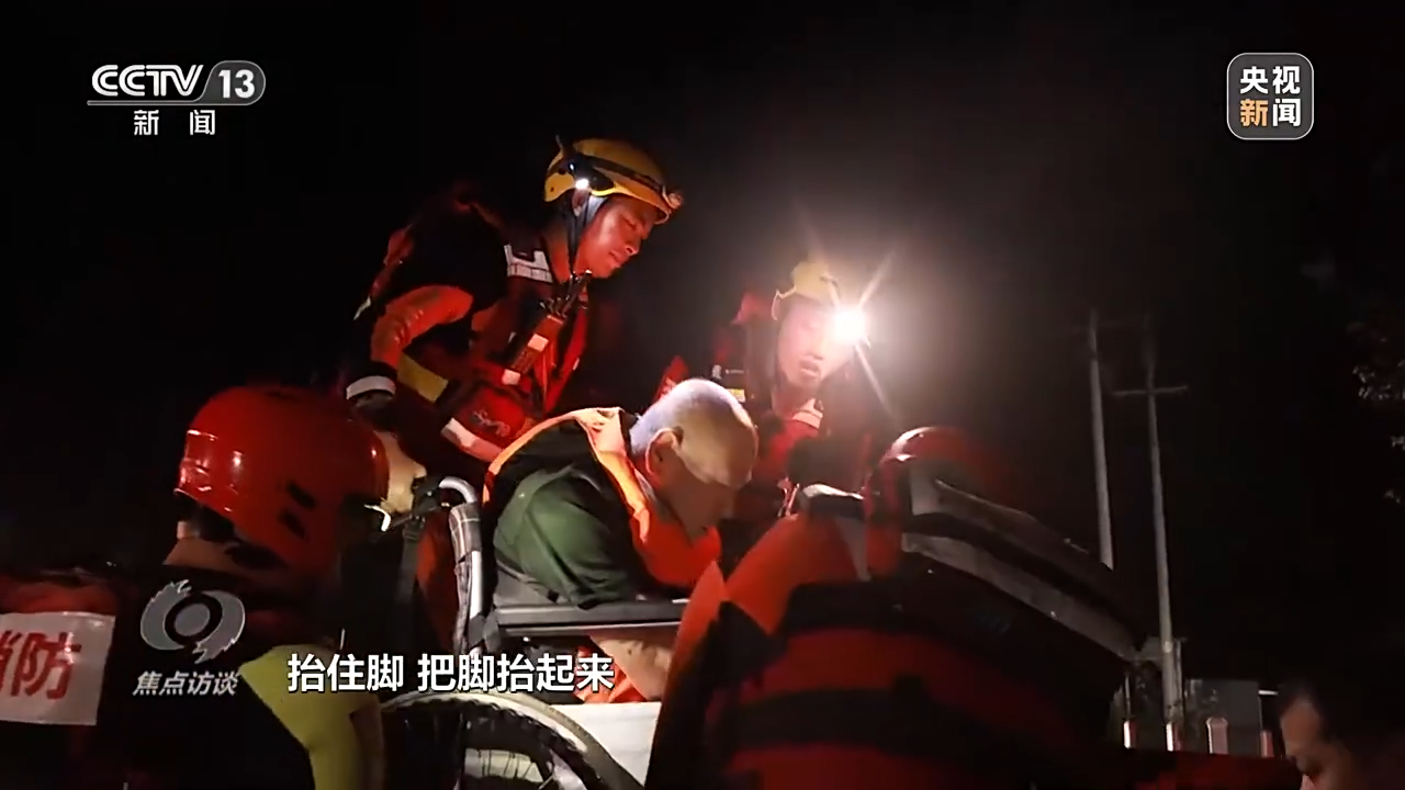 这时,村里的屈大爷一家向救援人员求助。屈大爷已经卧病在床九年,因为屈大爷行动不便,一家人原本一直不打算撤离,但现在听说还会有雨,他们决定还是转移出去。此时已经是晚上7时多,天已经黑了,并不是转移的好时机。可万一再下雨,积水继续上涨,转移会更困难。于是,救援人员决定尽最大努力,尽快把屈大爷一家送出去。